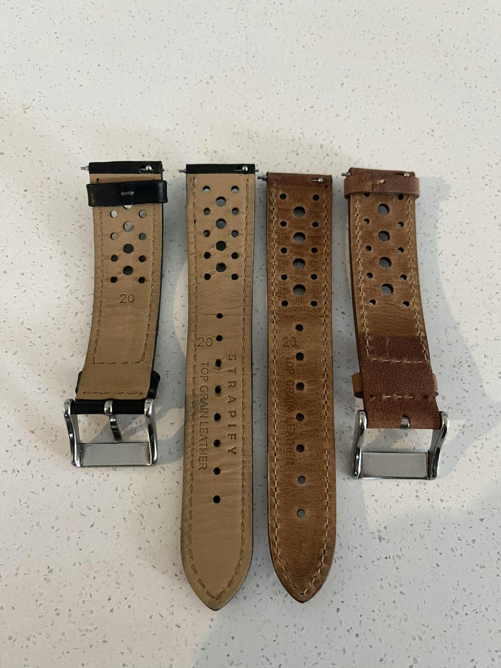 We've chosen to create our straps with top grain leather because it is the most durable, smooth, supple and natural leather type. The leather is further buffed to remove imperfections.